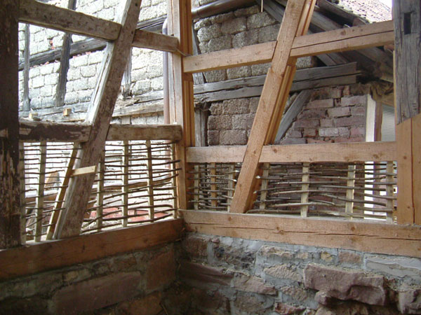Unter anderem entstand hier ein Lehmsichtmauerwerk mit Holzstürzen aus Douglasieholz.