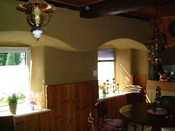 Nach der Aussage der Wirtin absorbiert der Lehmputz alle in einer Gaststube entstehenden Gerüche